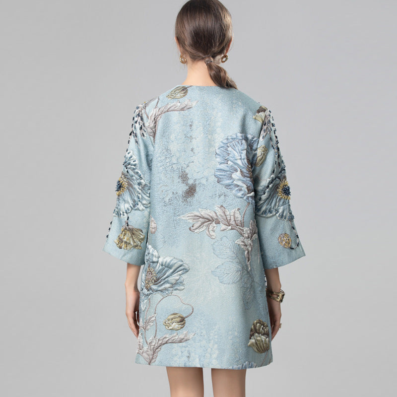 Diynav Lady Temperament Heavy Industry Nail Ball Collar Seven-Sleeved Blue Coat Top Station Women's Autumn Winter 2024