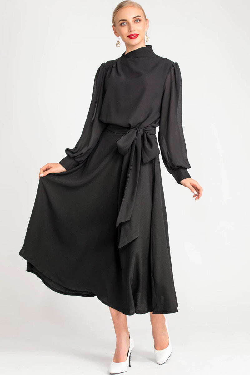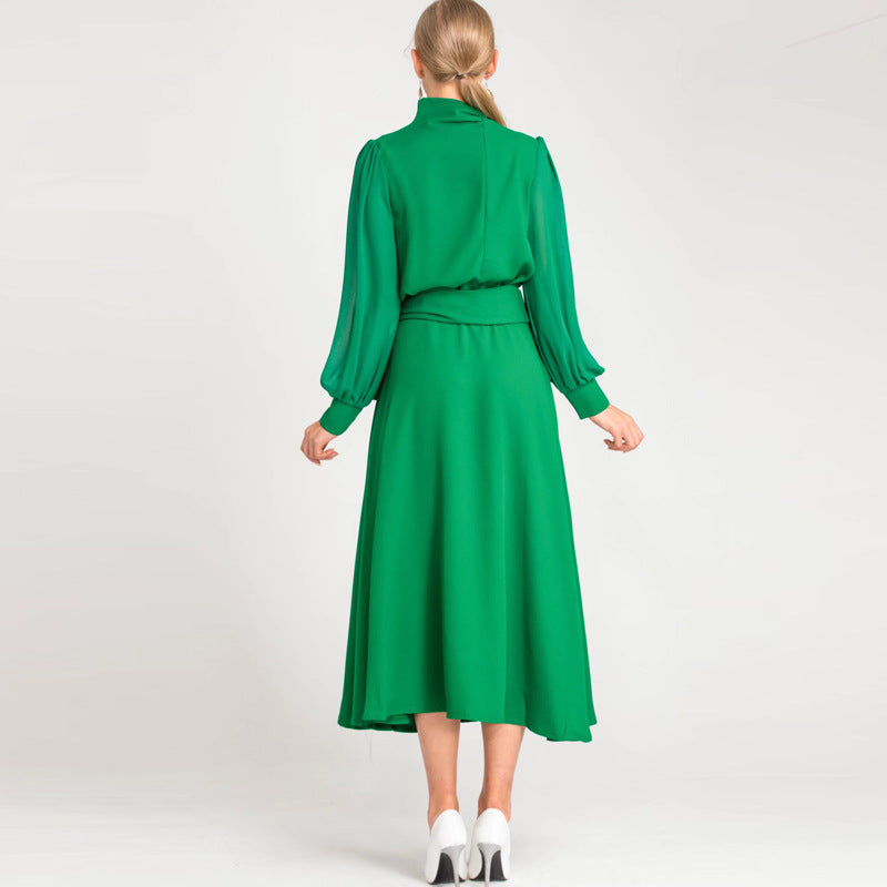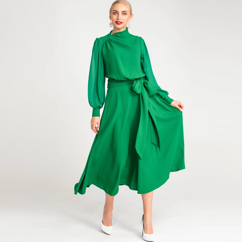 Diynav Spring And Summer Women's New Sexy Irregular Collar Long Sleeves Long-Sleeved Puffy Green Dress Dress Dress