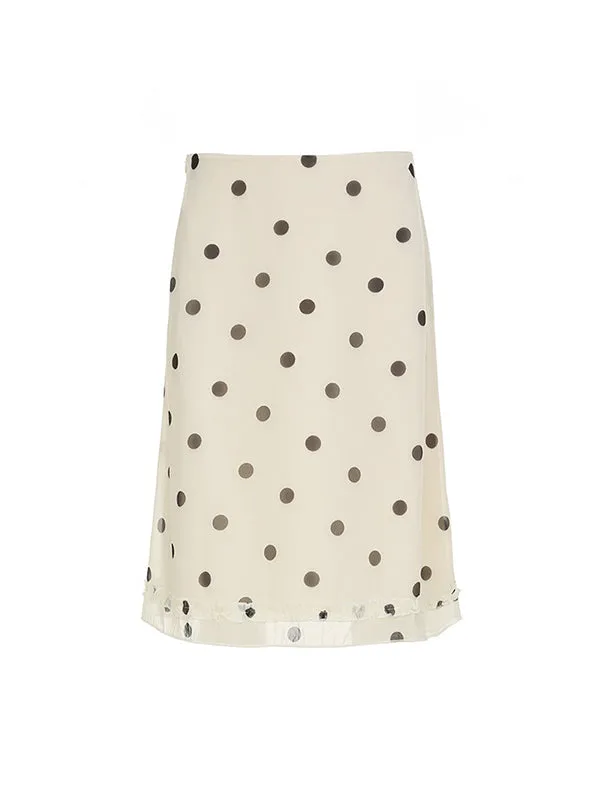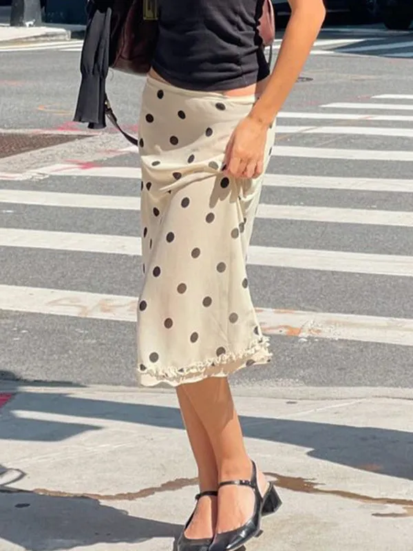 Step into unstoppable confidence with this apricot maxi skirt that fuses retro sass and modern badassery. The vintage polka dots scream charm, while the wild fungus-edge hem commands attention. Every curve looks sharper, every move more fluid , made from whisper-light fabric that keeps you cool and unstoppable, day or night.