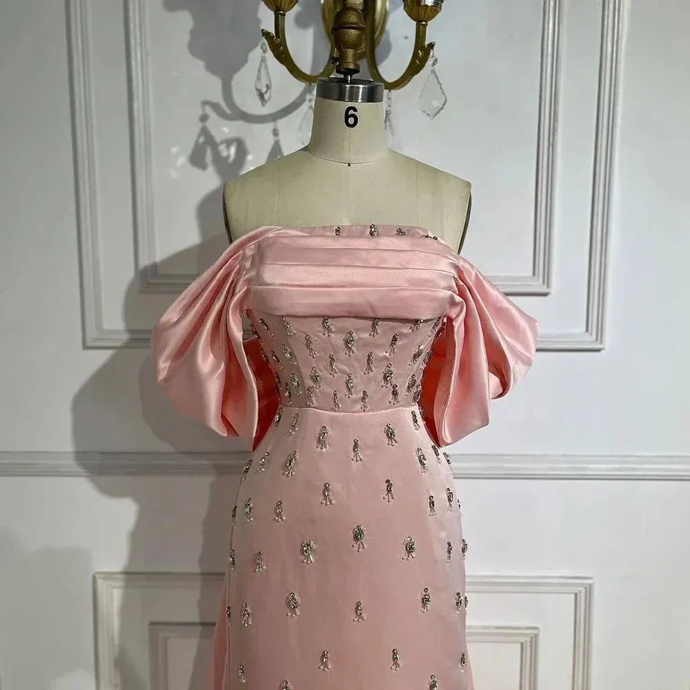 Effortlessly elegant. the SERENE HILL Luxury Baby Pink Off Shoulder Evening Dress is the perfect choice for any formal event. Featuring an off shoulder design and a stunning baby pink color. this dress exudes luxury. Perfect for weddings. proms. and parties. it will make you look and feel stunning.