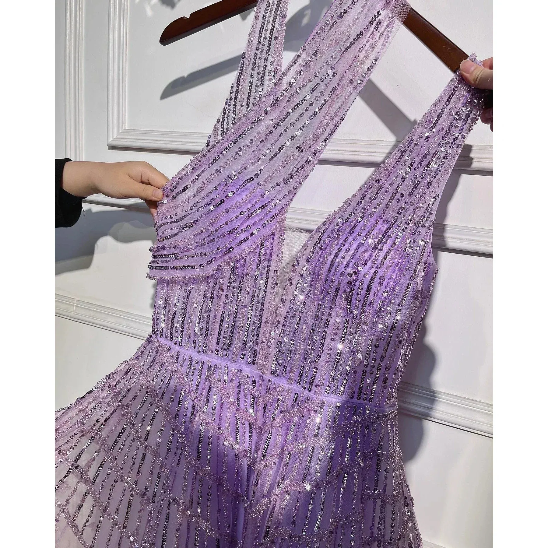 Our beaded Dubai lilac design exudes elegance and features a long. Arabic-inspired silhouette perfect for weddings. prom or special events. Make a statement in style with our stunning formal gown.