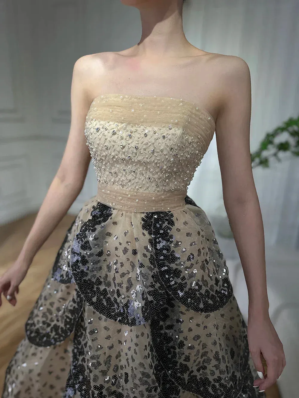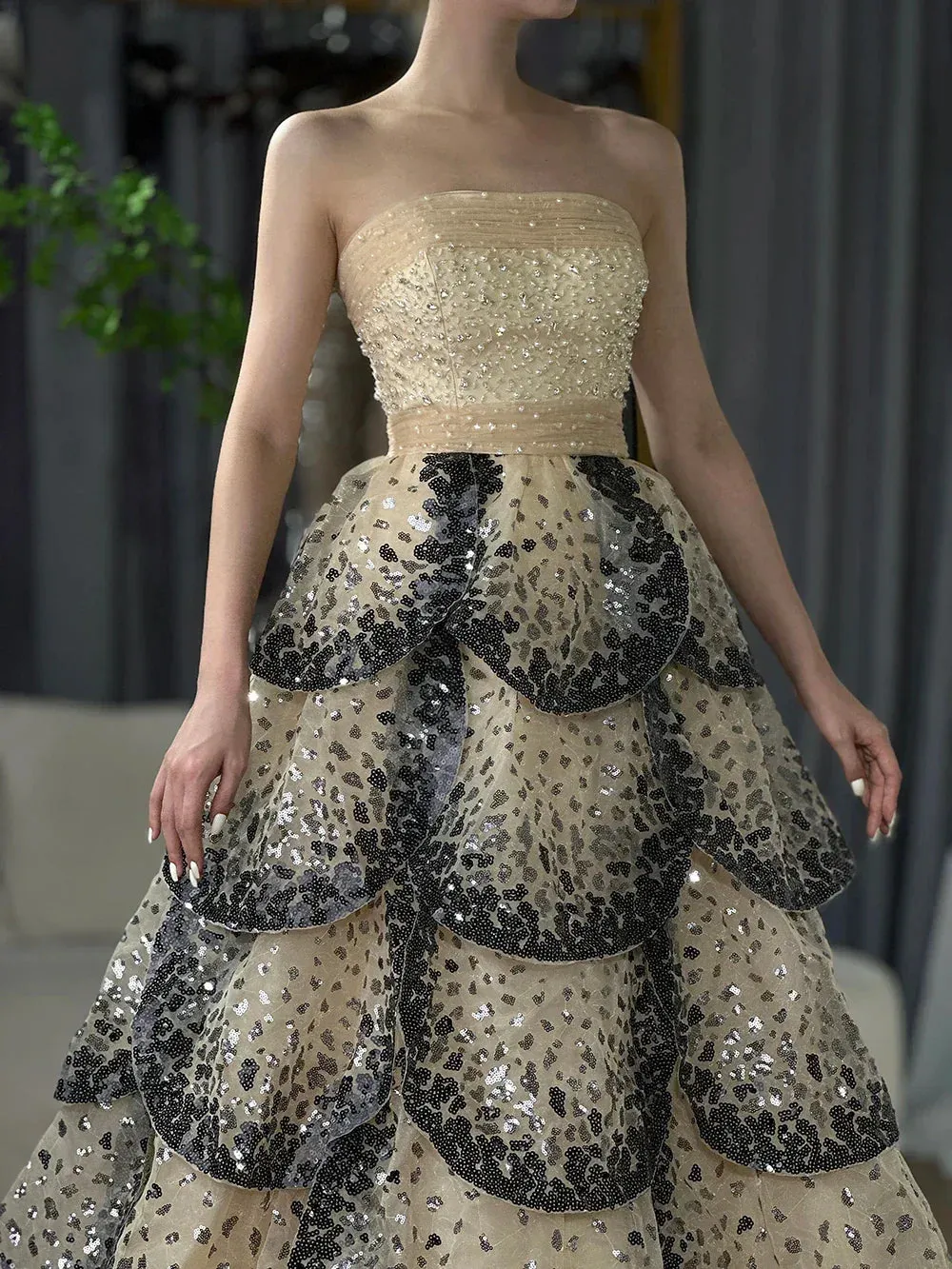 With its intricate design and high-quality materials. this dress is perfect for any formal event. Its luxurious silhouette and timeless color scheme will make you stand out in any crowd. Make a statement and feel like a true fashion icon with this exquisite dress.