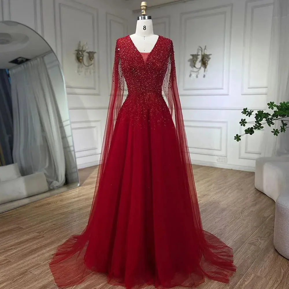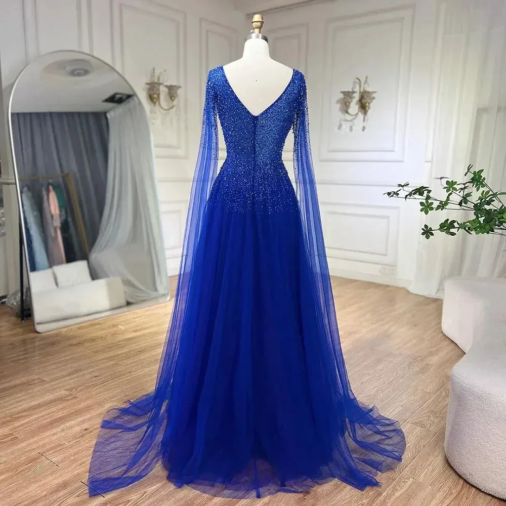 A flattering V-neckline. and a graceful cape to create a stunning wedding or party gown. The perfect combination of style and sophistication for any special occasion.