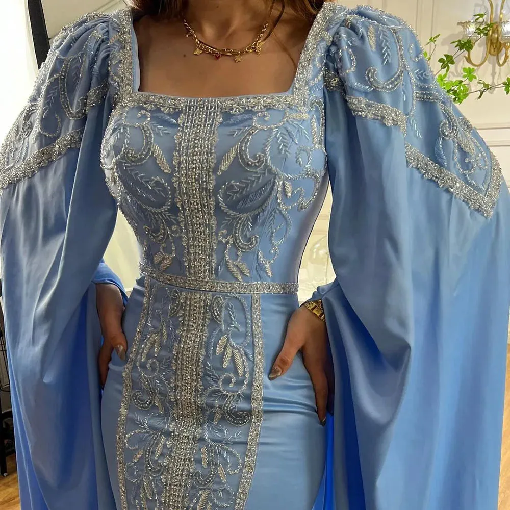 ?Crafted with intricate details. the Serene Hill Luxury Dubai Blue Mermaid Muslim Evening Dresses effortlessly combines elegance and modesty. With its stunning cape sleeves and mesmerizing blue color. this dress is perfect for formal occasions such as weddings and engagement parties. Experience luxury and style with LA72050