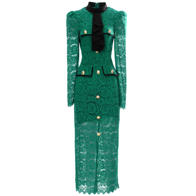 Diynav Collisive Color Collisive Sexy Open Fork High Lace Dress Dress Dress Spring And Summer Women's New 2025