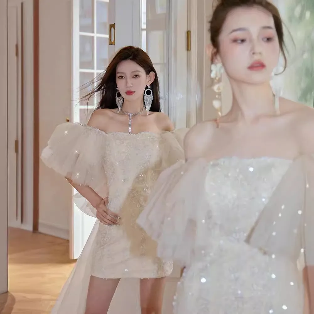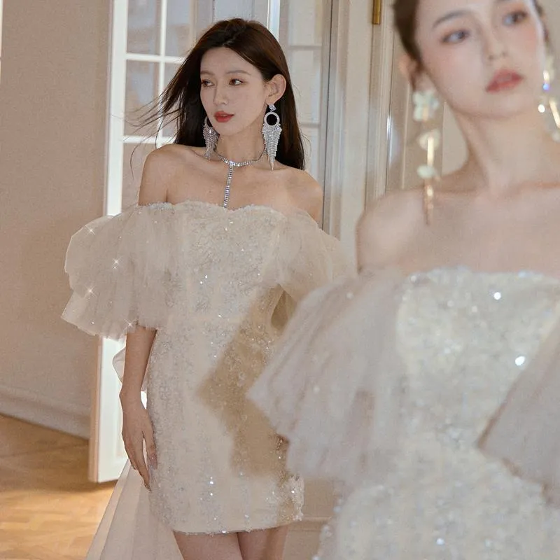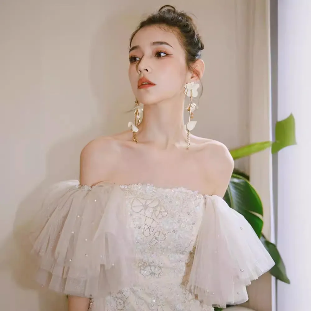 | Color | Champagne Ribbons And Sleeves Can Be Removed In One Dress |
