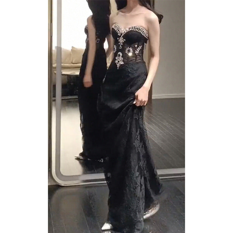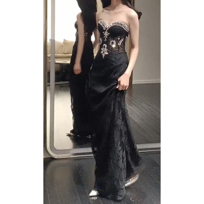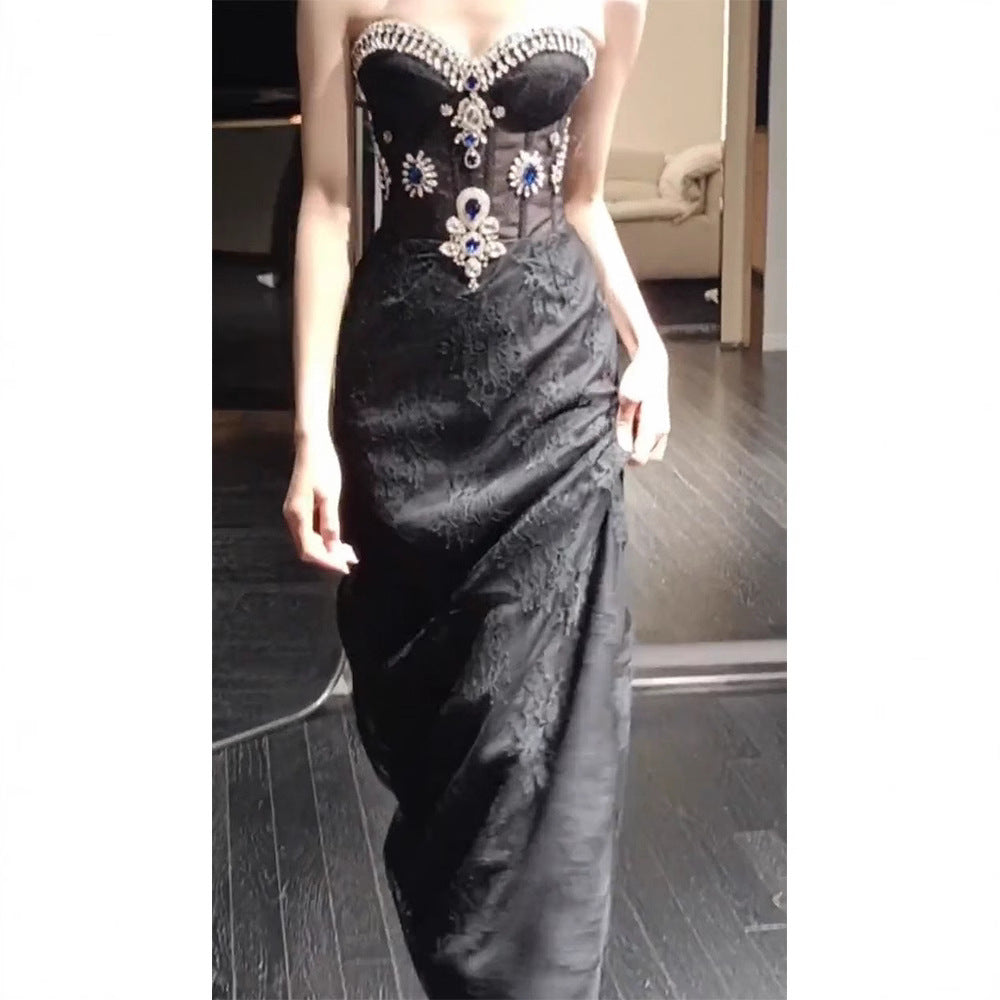 Diynav Dress With Bra Dress Woman 2024 Autumn New High-End Light Luxury Niche Banquet Heavy Industry Dress
