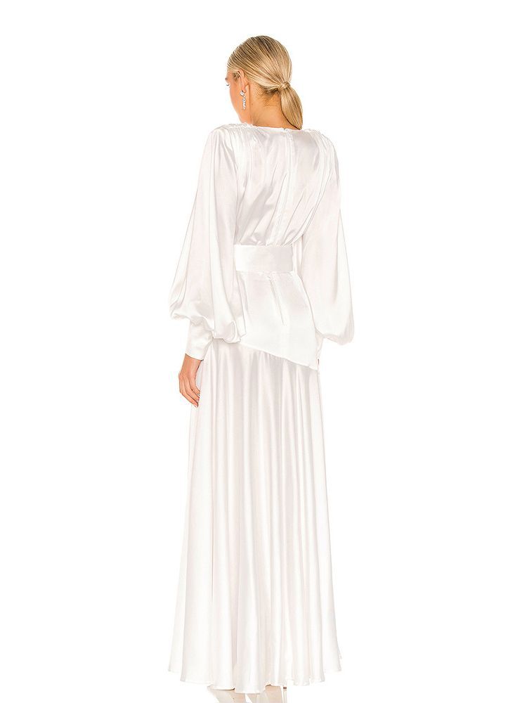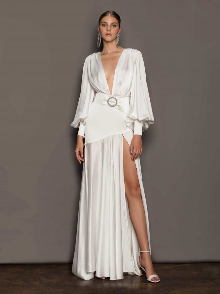 Diynav Dress Women 2025 New Autumn Sexy Open Fork Lantern Sleeves Thin Famous French-Style Fasting Long Skirt