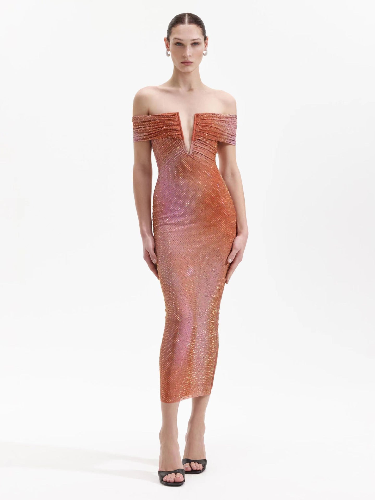 Diynav Fashion Dress Elegant V-Neck Sexy Hot Diamond Into Shoulder Sleeve Banquet Dress Bodyd Women