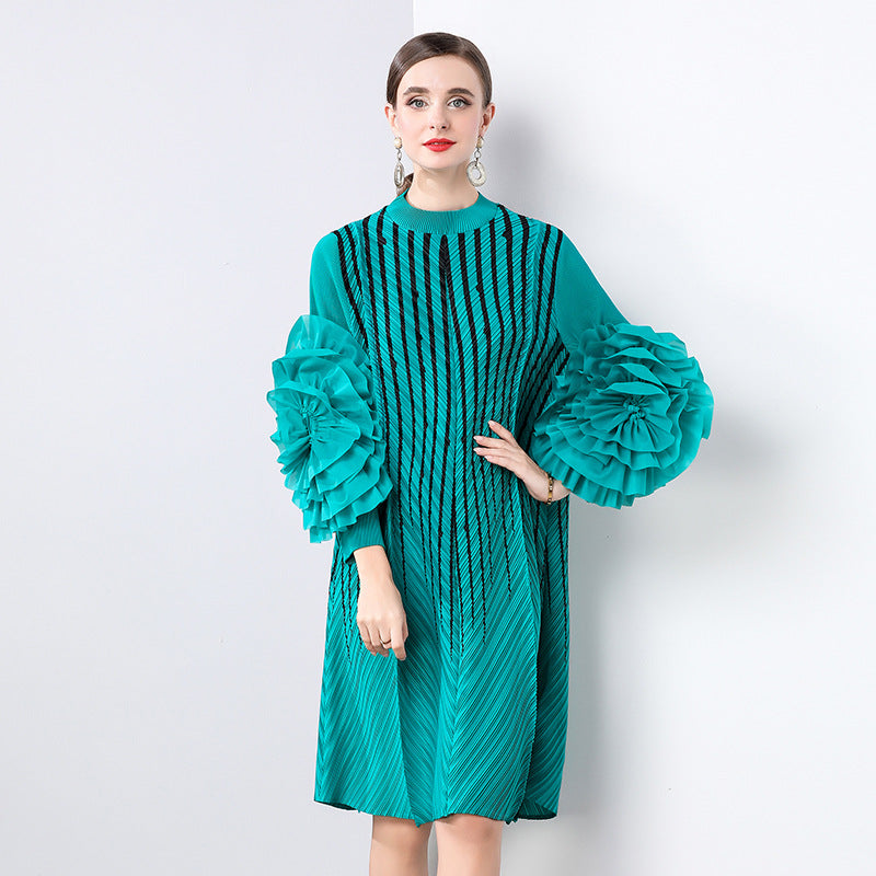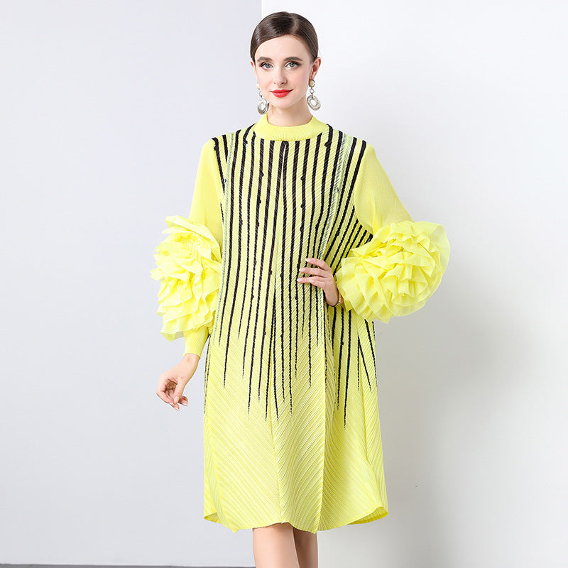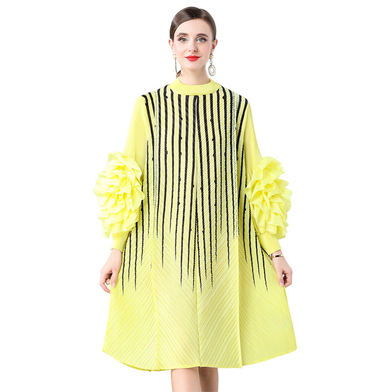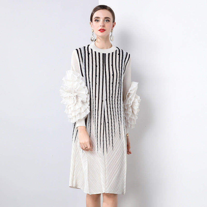 Diynav Gas Handmade Large Petal Striped Folded Dress Female Senior Sense Thin Long Folded Dress