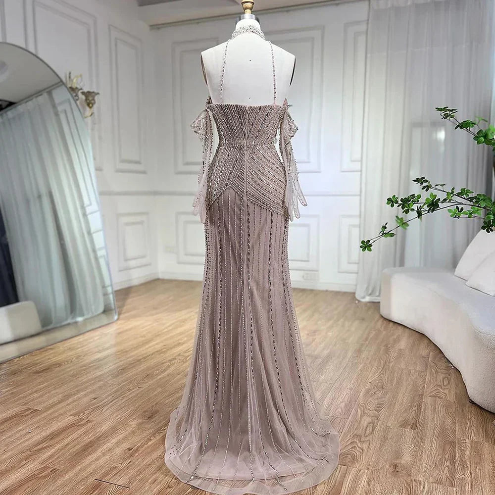 Diynav Mermaid Halter Sleeveless With Gloves Beaded Evening Gowns 2025 Elegant Party Dresses For Women HZ1017