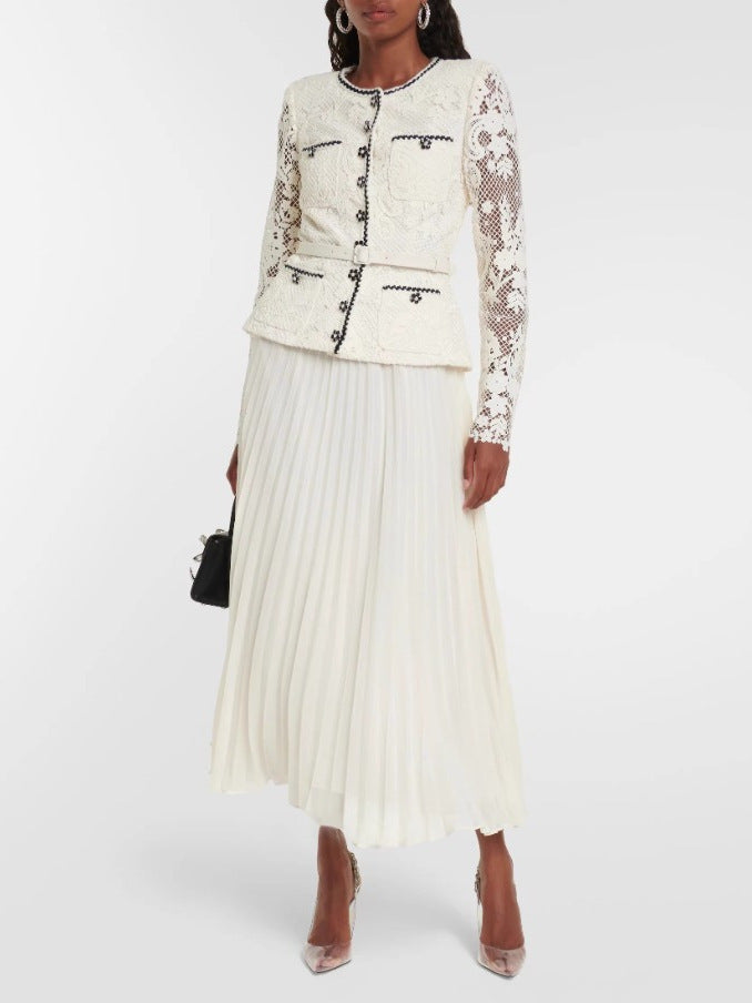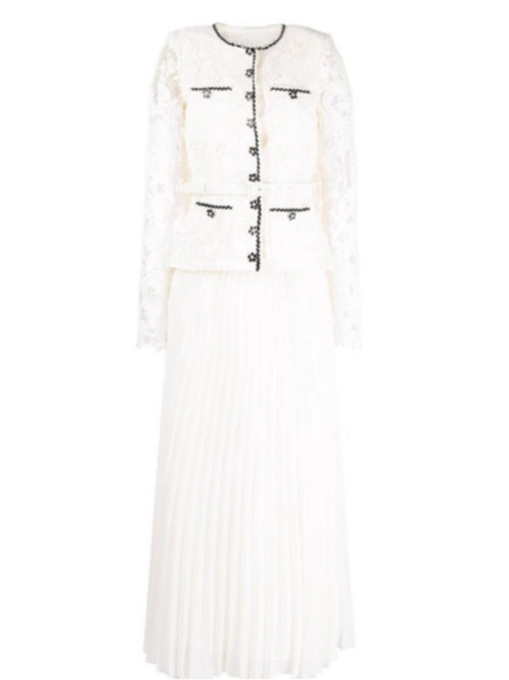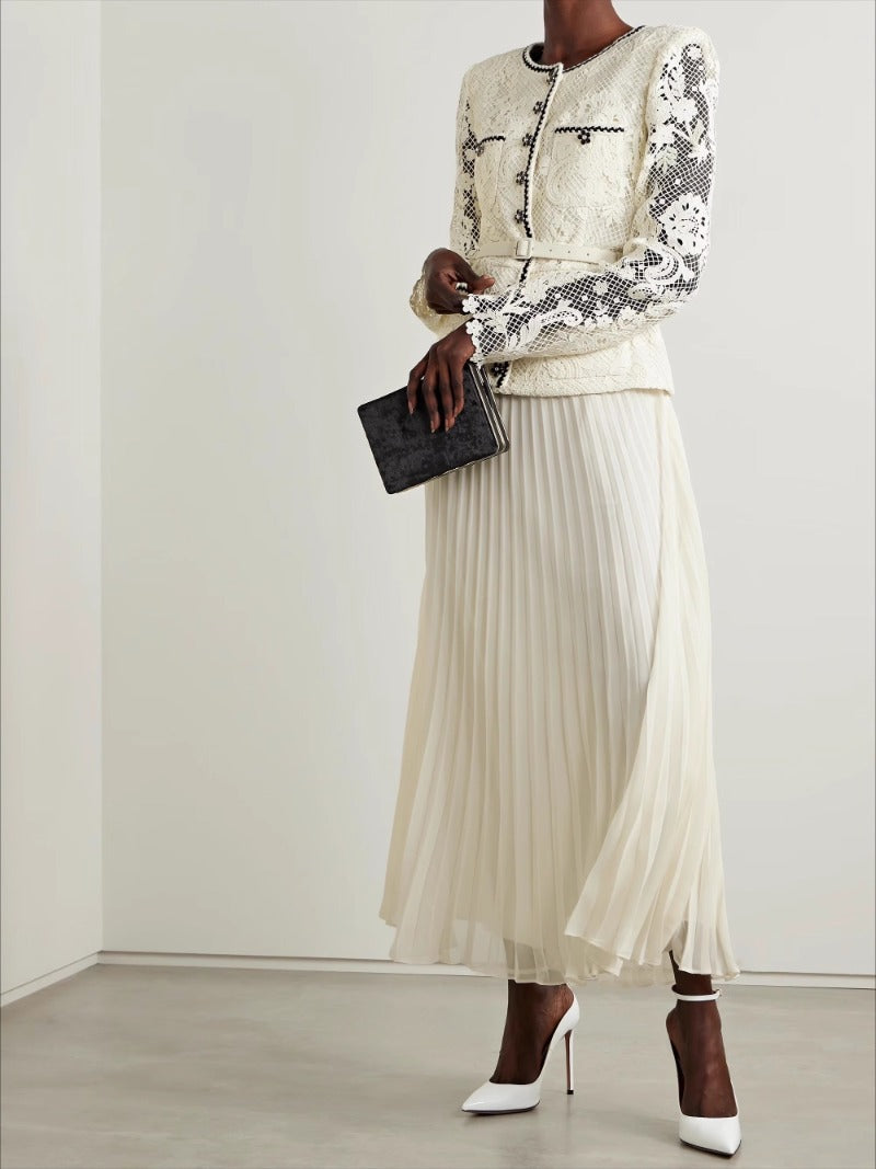 Diynav Name Studded Woven Strip Lace Embroidery Hook Hollow 100-Fold Long Dress Apricot Color