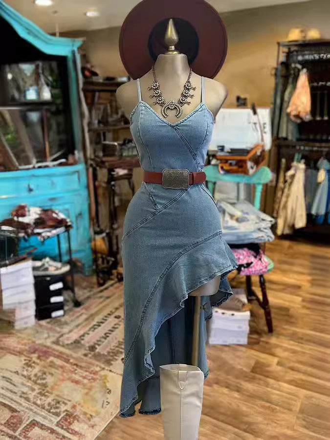 Diynav New Sling Gile High-Sclam High-Up To Repair The Fork With The Slanted Leaf Side Of The Denim Dress
