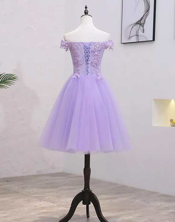 Light Purple Lace And Tulle Off The Shoulder Homecoming Dress S11189