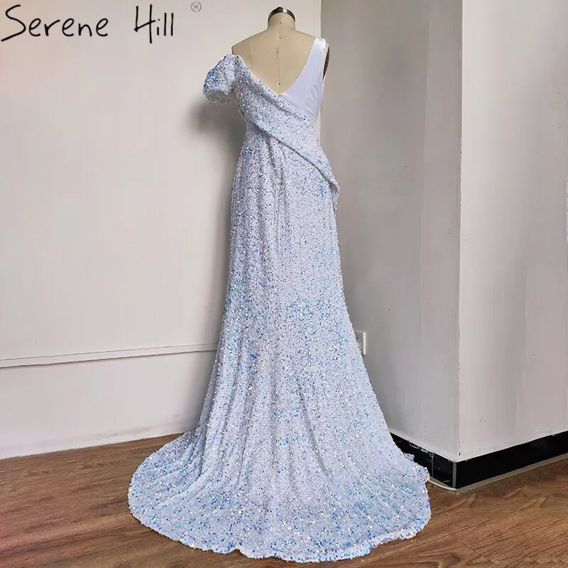 Sale Red One Shoulder Luxury Dubai Evening Dresses Long 2025 Sleeveless Sexy Beaded Sequins Formal Dress LA70416