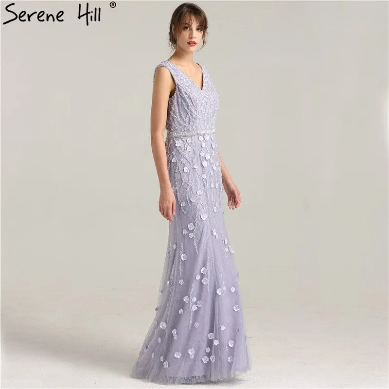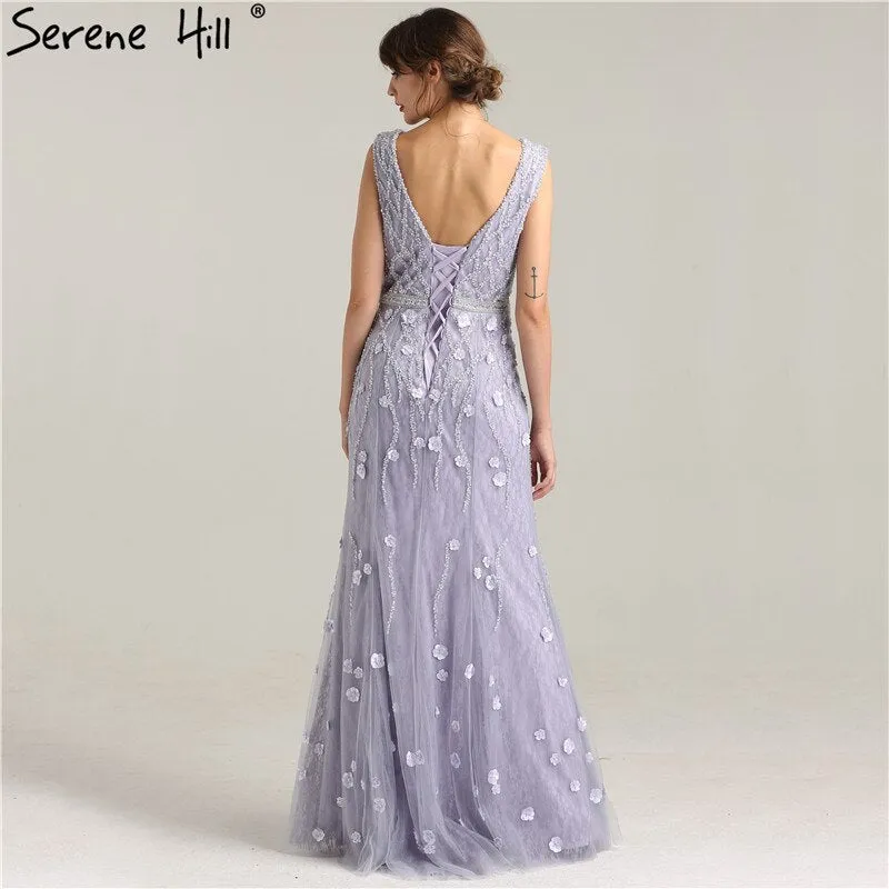 On Sale No Return No Refund Sale Real Photo Deep-V Sexy Evening Dress Long Beading Pearls Tulle Sleeveless Mermaid Party Evening Dress 2025 LA6255