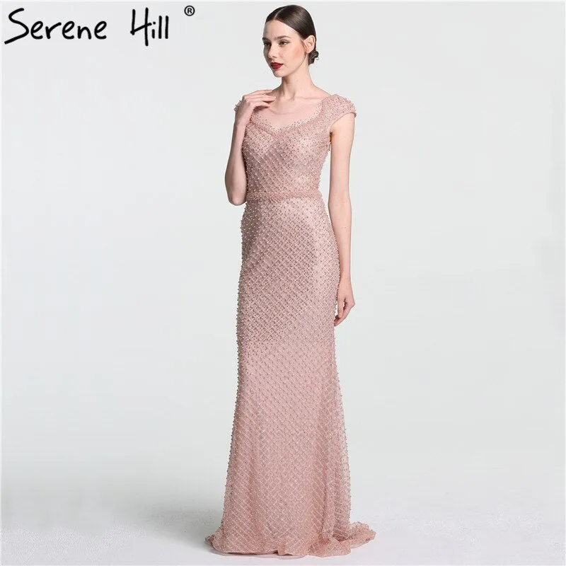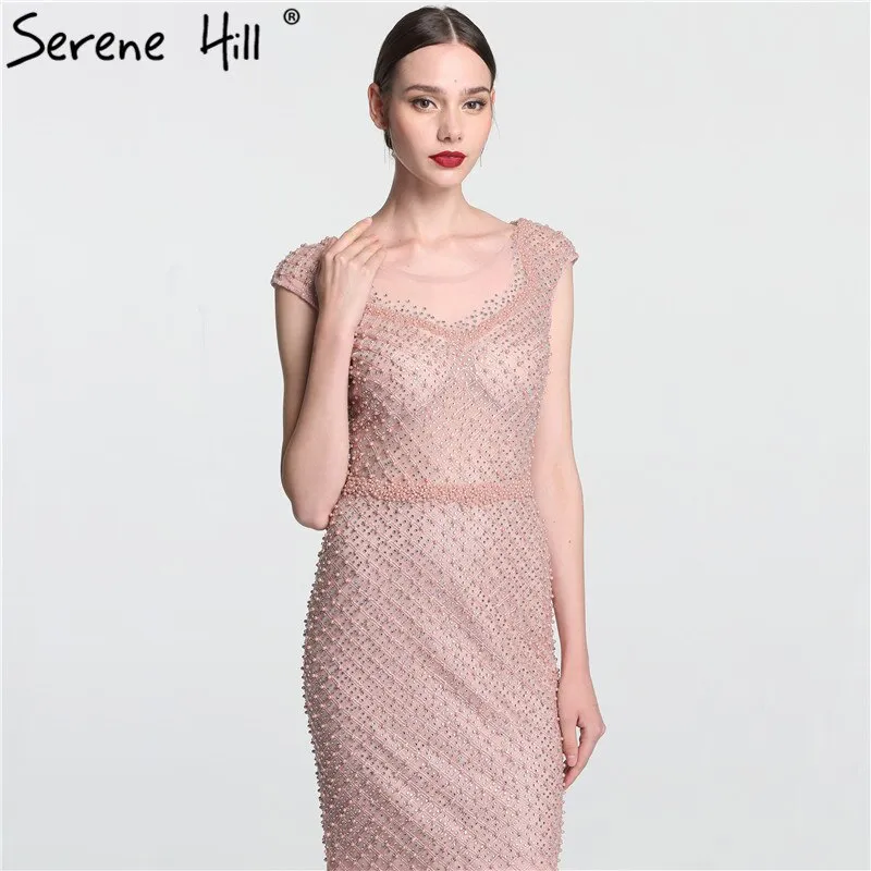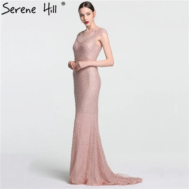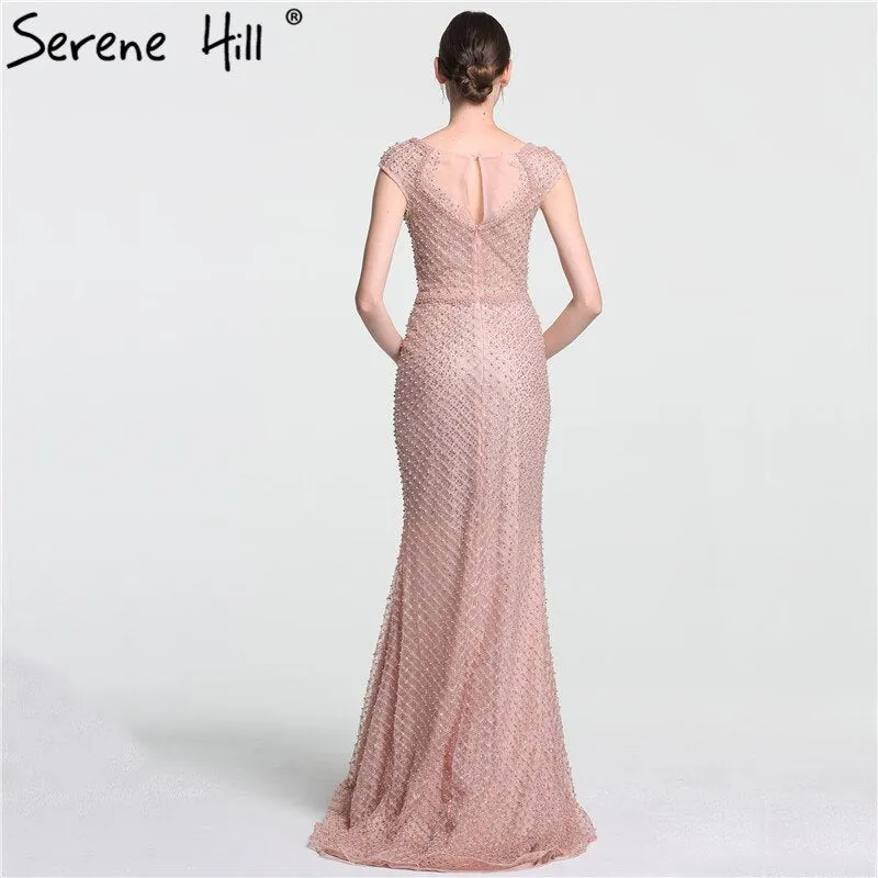 On Sale no return no refundSale Newest Fashion Elegant Mermaid Evening Dresses ?Pink Manual Beading Pearls Tulle Evening Gown 2025 Real Photo LA6113?