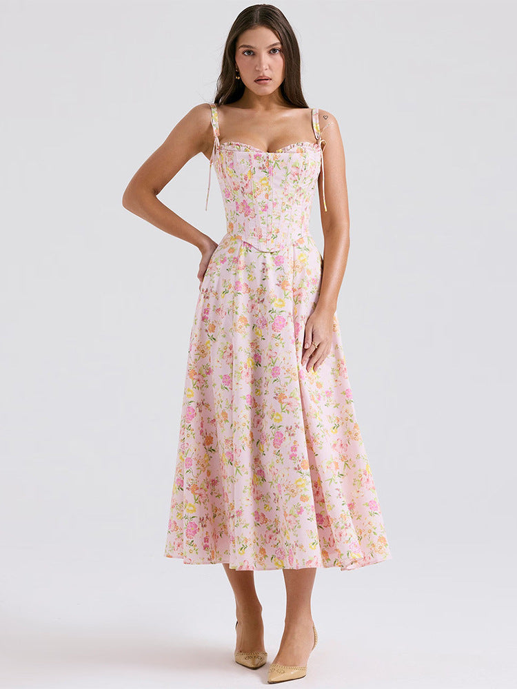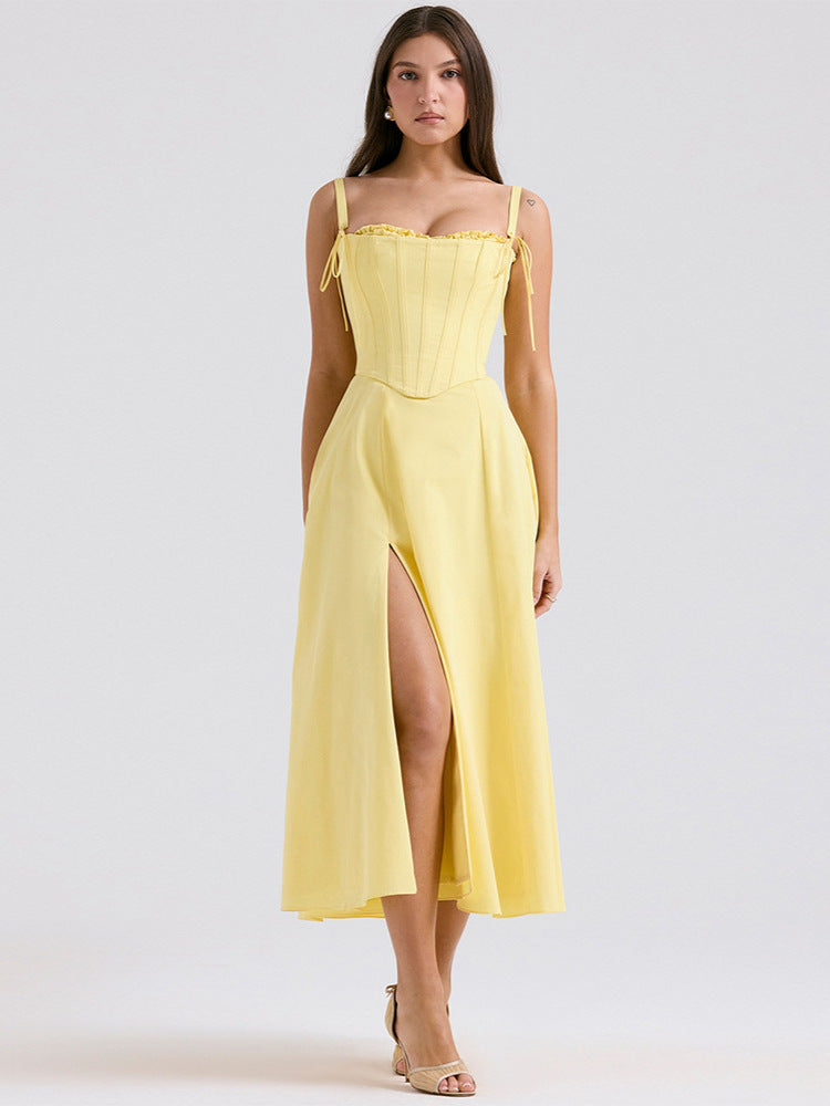 Diynav Solid Color Sexy Tective Dress Body Shaped Fish Bone Tie Sling Small Top Suit Dress