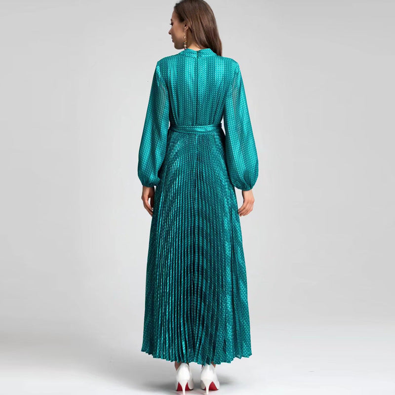 Diynav Style V-Neck Lantern Long-Sleeved With Blue Folded Dress Dress Dress Women's New Autumn/Winter 2024