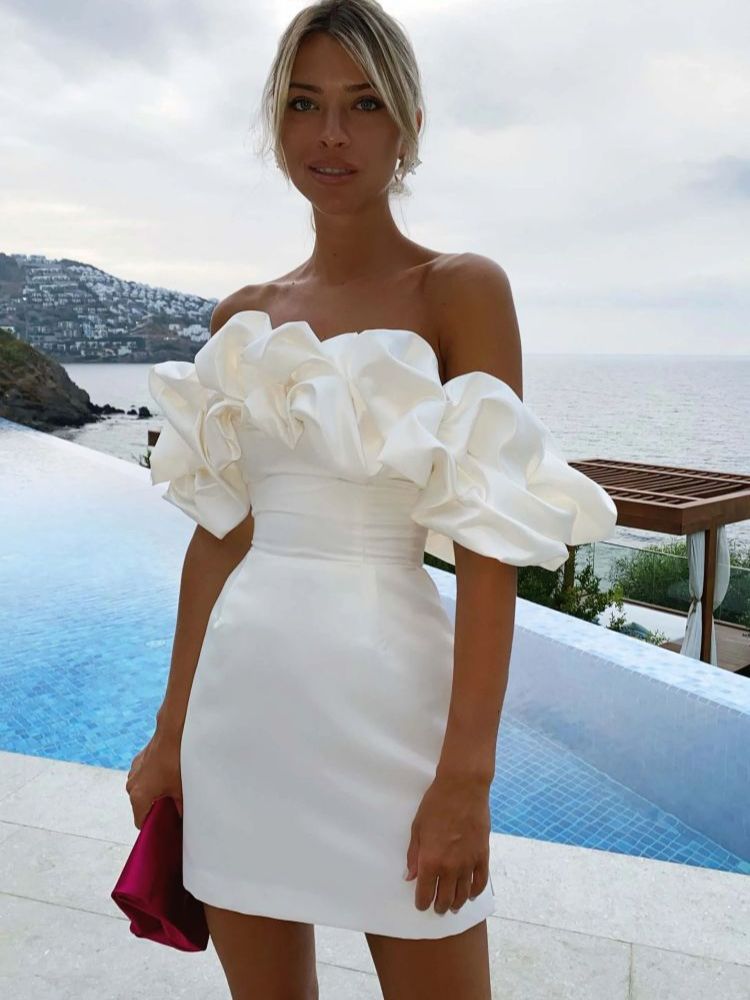 Diynav Women's Lotus Leaf Side Sexy Shoulder Dress Solid Color High-End Temperament Braid Skirt Dress Dress Dress