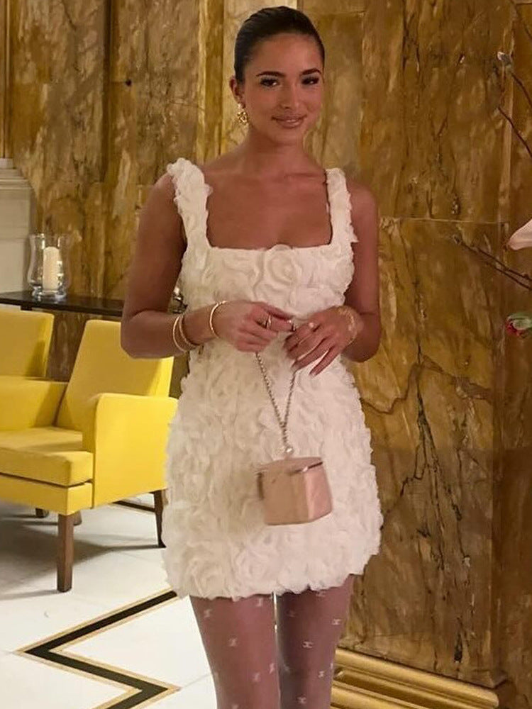 Diynav Women's New Three-Dimensional Flowers Solid Color Sexy Sling Dress With Bare Back Temperament Banquet Dress Dress Dress Woman