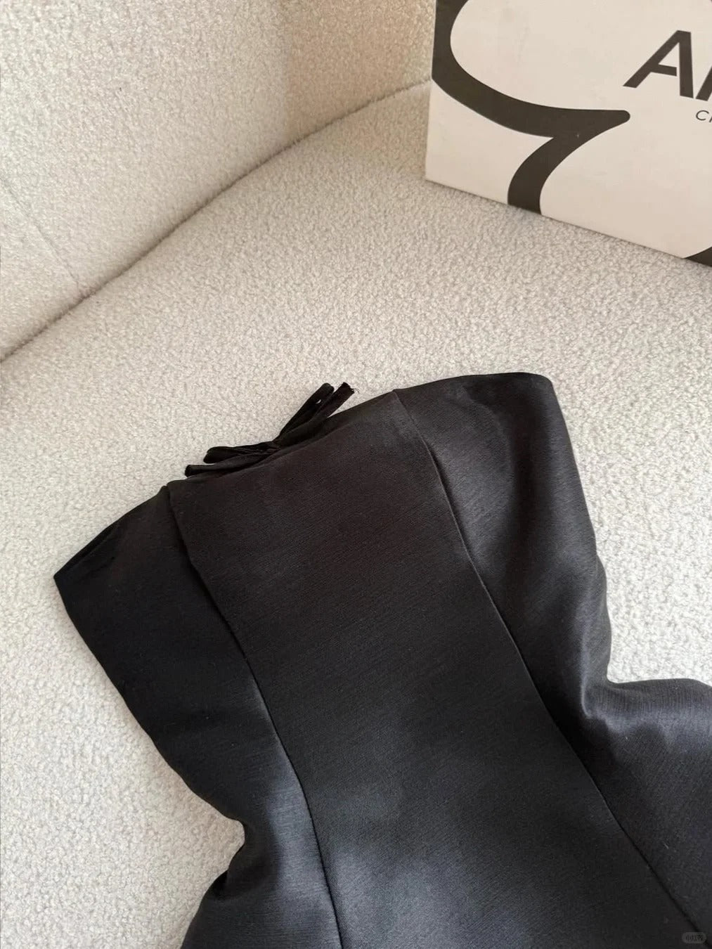 Fashion Black Strapless A-Line Satin Short Prom Dress Homecoming Dress HZ1108